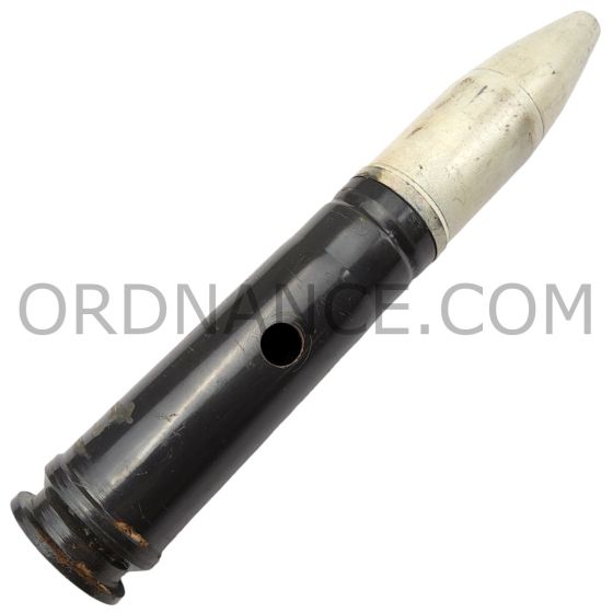 Inert 30mm German DEFA Target Practice Round. 30x113mm. Explore a unique piece of military aviation history with the 30x113mm DEFA Target Practice (TP) Round, believed to be of German origin. This exceptional item is a testament to the intricate design and functionality of the DEFA autocannon, renowned for its role in NATO's air and ground defense strategy. Ideal for collectors, historians, and military enthusiasts, this TP round offers a fascinating glimpse into the engineering prowess behind military ordnance. The 30x113mm DEFA TP Round stands out with its suggested German heritage, adding a layer of intrigue and historical significance. The meticulous condition of this round showcases the quality and precision of military manufacturing, making it a prized addition to any collection. Its authenticity is further highlighted by the presence of a hole in the case, indicating that it has been rendered inert for safe handling and display. This collectible embodies the spirit of innovation and tactical sophistication that defines military technology. The DEFA cannon system, integral to various NATO aircraft, has been pivotal in establishing air superiority and ground support tactics. Owning a piece of this history allows enthusiasts to connect with the technological advancements and strategic thinking of past military operations. Ordnance.com is dedicated to providing enthusiasts and collectors with access to authentic and historically significant military items. The 30x113mm DEFA TP Round, with its exceptional condition and believed German origin, meets our high standards for quality and authenticity. It represents an opportunity to own a piece of military engineering excellence, perfect for those who appreciate the history and technology of warfare. Whether you are seeking to enhance your collection with rare military artifacts, interested in the mechanics of historical ordnance, or looking for a unique gift for a military enthusiast, the 30x113mm DEFA TP Round from Ordnance.com is an unparalleled choice. Its great condition, coupled with its intriguing origins, ensures it will be a centerpiece of any military memorabilia collection. Discover this and other rare pieces of military history at Ordnance.com, where we curate our selection to include the most authentic and significant pieces available. Visit us today to secure your 30x113mm DEFA TP Round and take home a piece of military heritage.